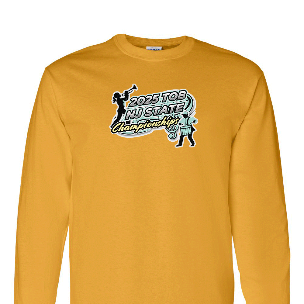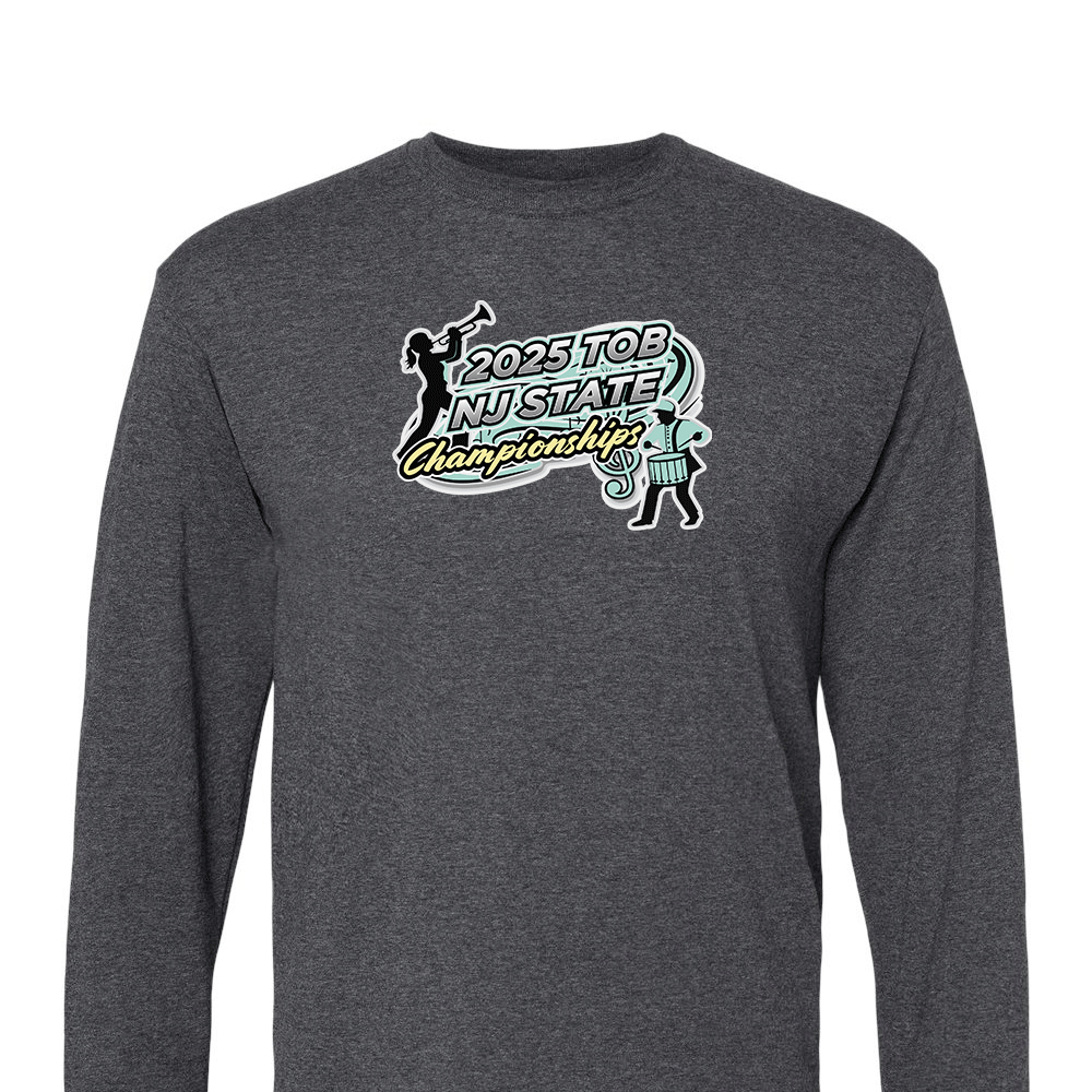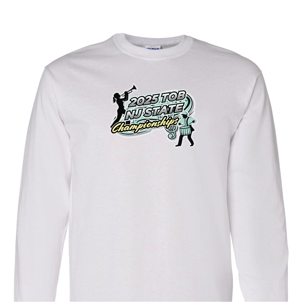 Embrace the spirit of the 2025 TOB NJ State Championshipswith our premium long sleeve solid t-shirt! Made from 100% U.S. cotton and featuring Gildan® Heavy Cotton’s cutting-edge soft cotton technology, this 5.3 oz preshrunk shirt delivers exceptional comfort, durability, and printability.